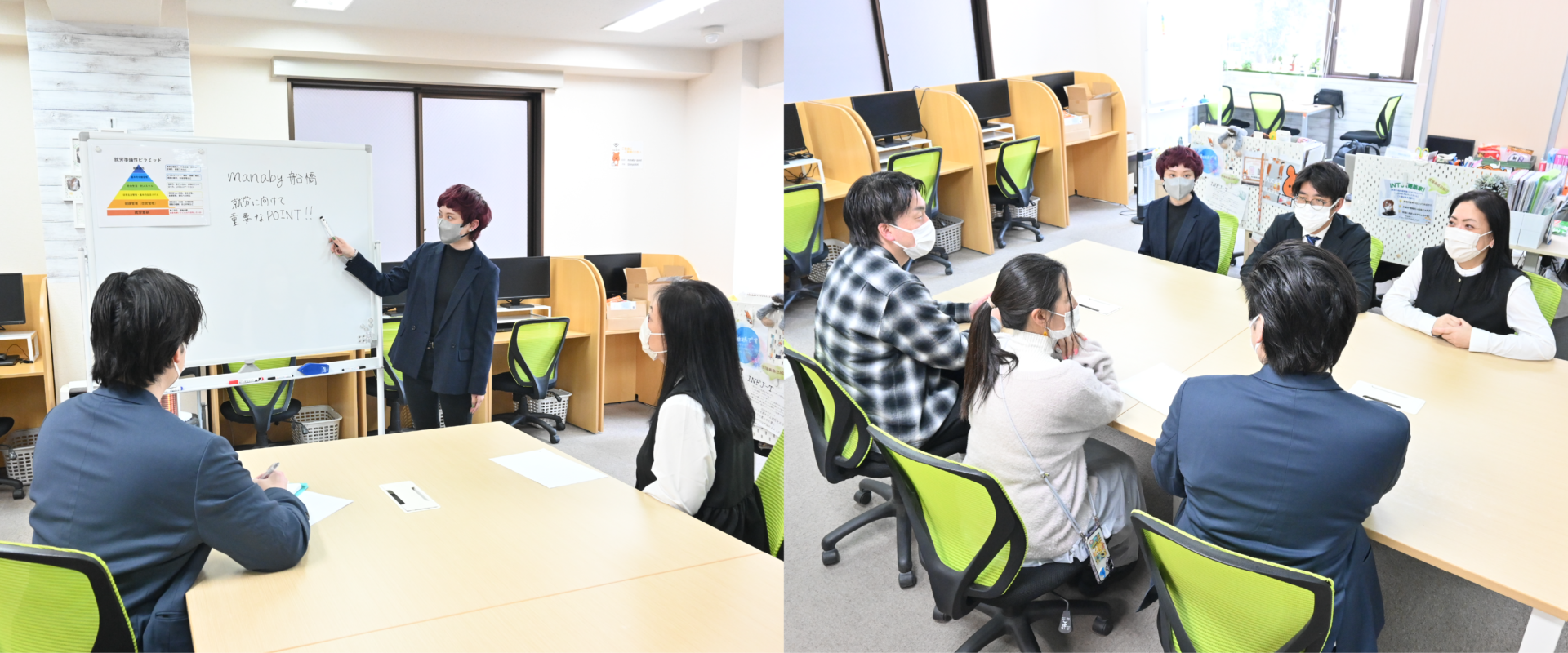 manaby 船橋駅前事業所では、コミュニケーションを大切にし、ご利用者さまが「気づき」を得られるような支援を目指しています。仕事に必要なスキルの習得から、就職活動のサポート、就職後の定着支援まで一貫しておこなっています。